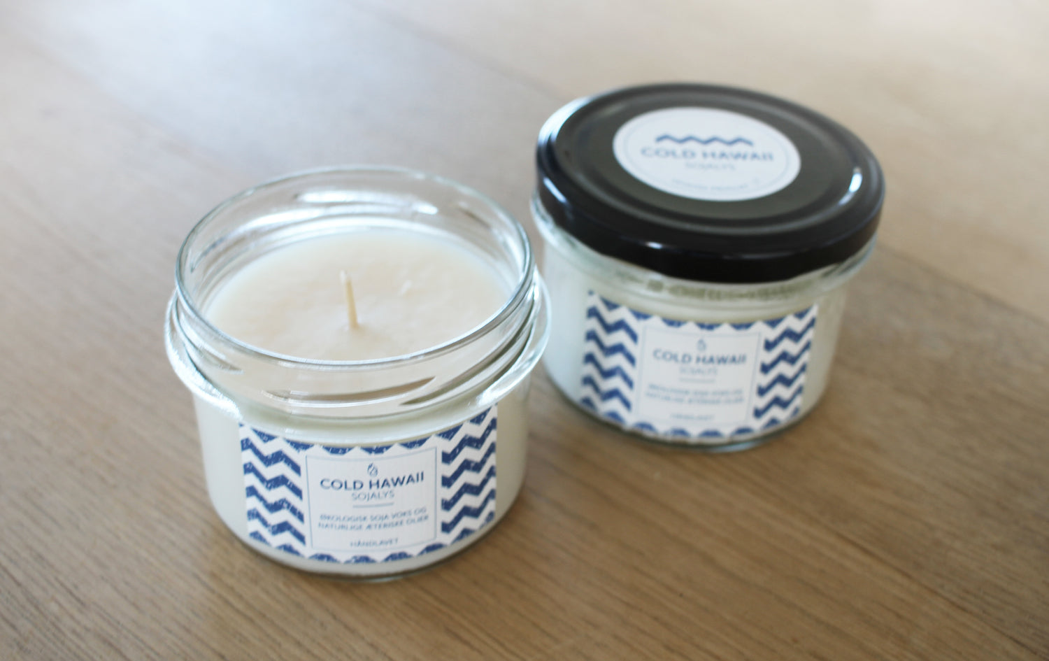 Håndlavet, vegansk lys fremstillet af økologisk sojavoks og naturlige, æteriske olier. Fås i mange duftvarianter med dit eget logo, grafik eller bynavn. Afgiver ikke giftstoffer.